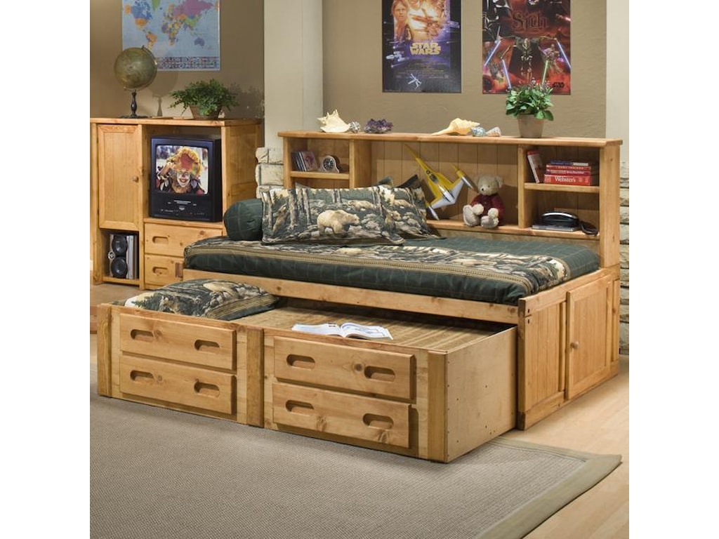 This transitional twin corner bookcase bed is featured in a dark cherry finish making it an appropriate choice for a number of youth bedroom settings. More Buying Choices 79800 3 new offers Donco Kids Bookcase Captains Trundle Bed TwinTwin Dark. This Twin Size Daybed with a Twin Size Trundle Bed is constructed of solid wood sourced from renewable plantations and a urethane finish is used to enhance the natural beauty of the wood grains and patterns.