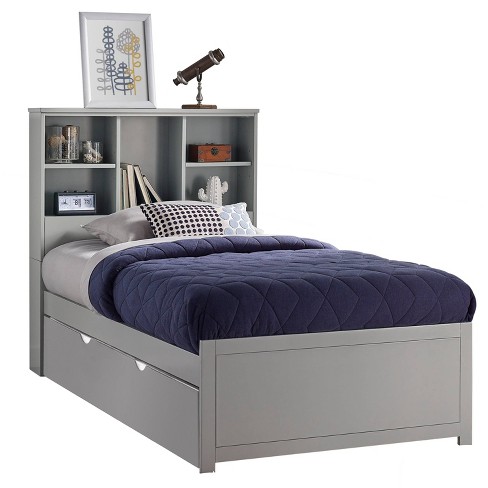 Westport Gray Twin Bookcase Captains Trundle Bed The new Westport Gray Collection will bring a modern updated look to your childs room. Owen Grey Twin Bookcase Bed With Single 4-Drawer Storage Unit 695 12 Owen Grey Full Panel Bed With Trundle Storage 695 1. The bookcase headboard allows for convenient storage within arms reach.
