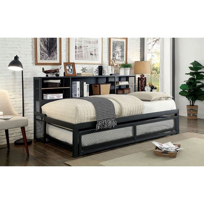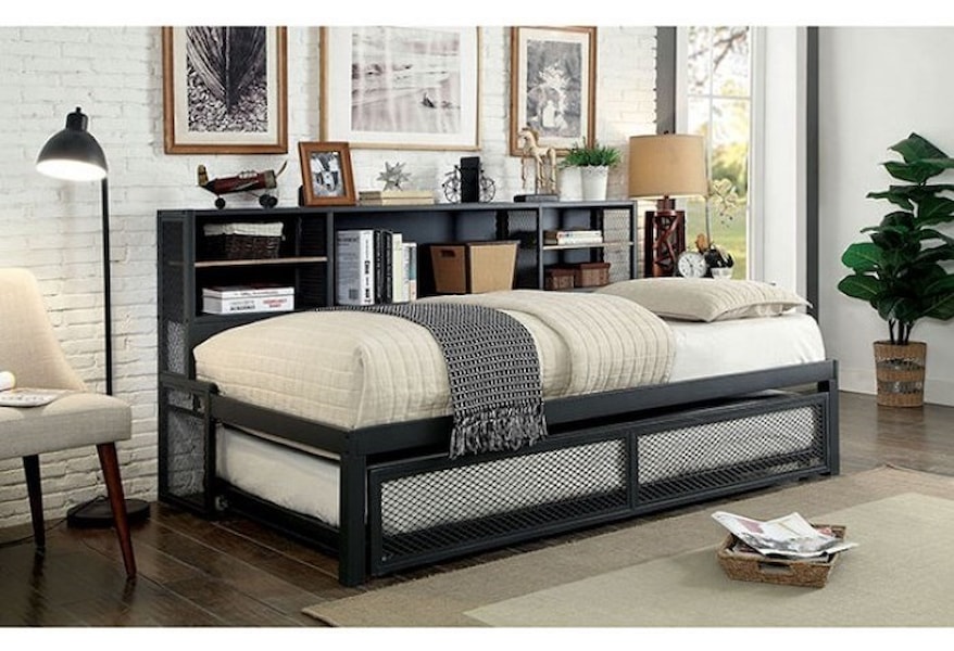 Furniture Of America Debra Cm1021 Modern Industrial Twin Trundle Daybed With Bookcase Nassau Furniture And Mattress Daybeds