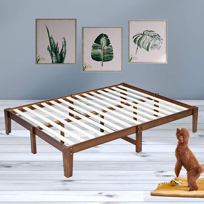 Homecho 14 Inch Solid Wood Platform Bed Frame Mattress Foundation With Wooden Slats Support 660 Lbs Heavy Duty No Box Spring Needed Natural Finish Full Hmc Sw 002 Amazon In Home Kitchen