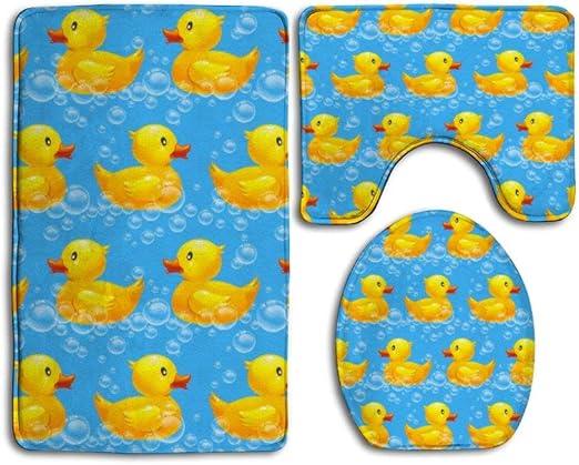 Memory Foam Bath Mat Velvet Toilet Lid Cover Washable Funny And Cute Tiled Yellow Rubber Ducky Duck Bathroom Rugs And Mats Sets 3 Piece U Shaped Contour Shower Mat Non Slip Absorbent Home