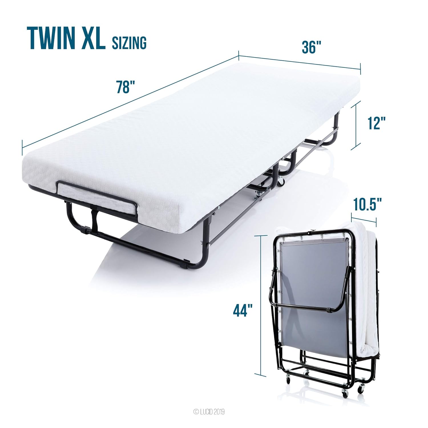 Lucid Rollaway Guest Bed With Memory Foam Mattress Fold And Hide Away For Easy Storage Rolling Cot With 4 Inch Mattress Twin Xl Size Amazon In Electronics