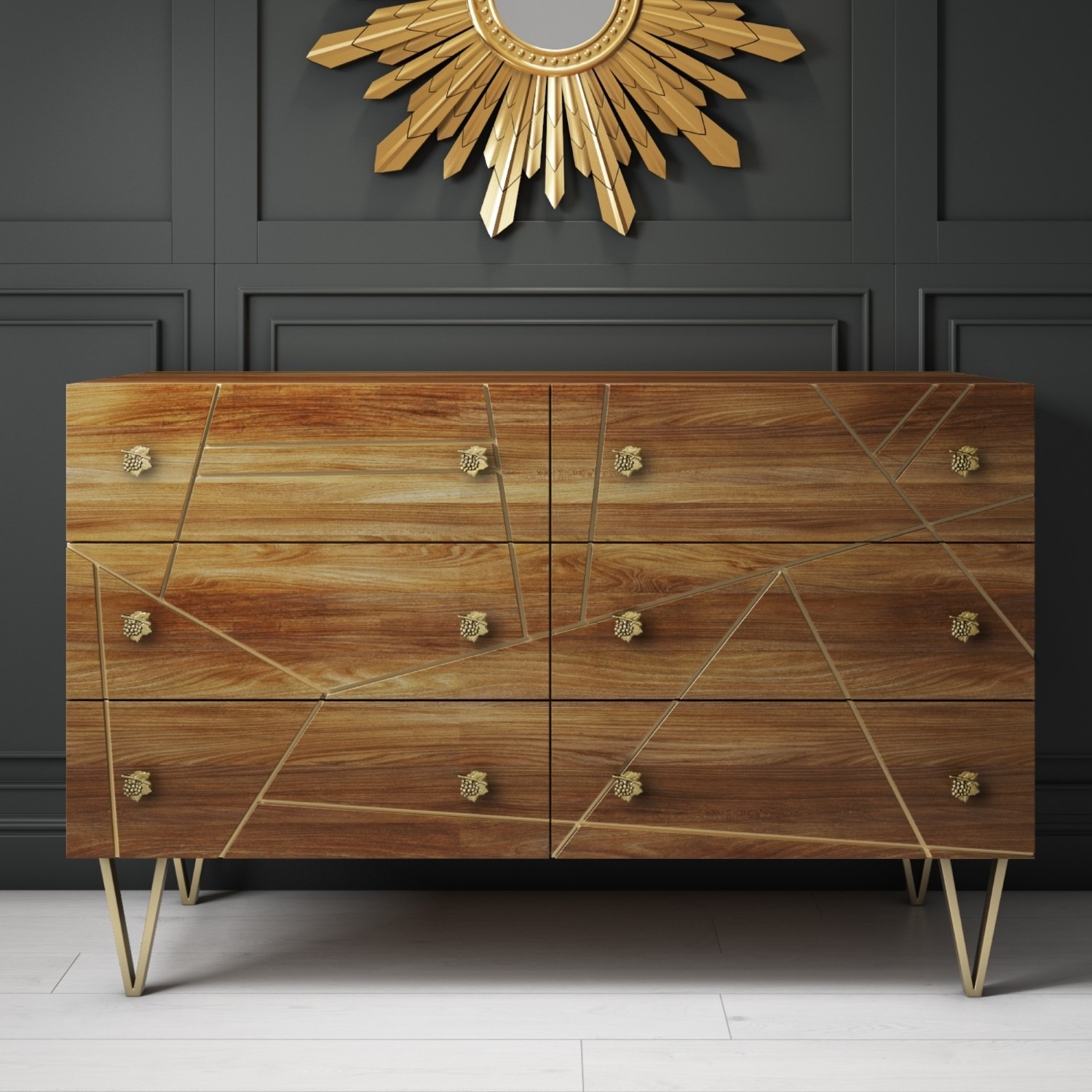 Halo 6 Drawer Chest Of Drawers With Brass Inlay In Natural Honey Furniture123