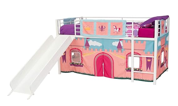 Princess loft bed with slide. The castle is also enriched by a Princess Tower with peek through and fold down window cover. Princess Low Loft Bed with Slide Pink. Its equipped with a slide and an upright ladder.