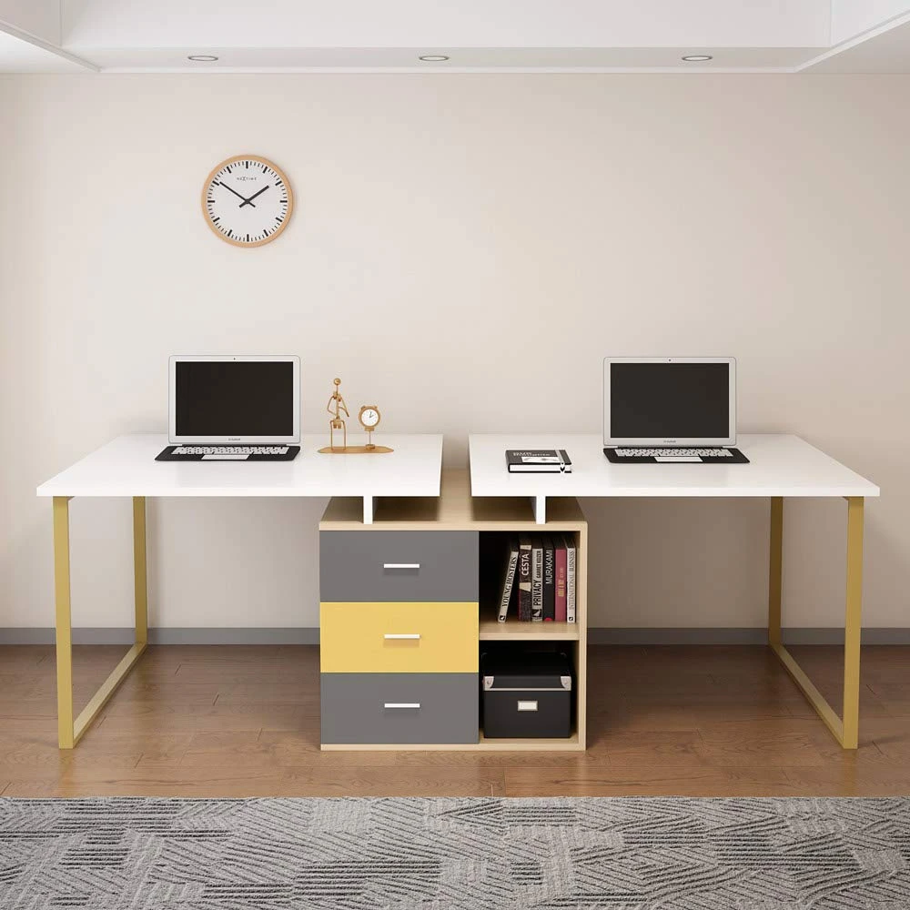 Tribesigns Computer Desk For Two Person 87 Inches Adjustable Double Workstation Extra Long Office Desk With File Cabinet Large Reversible L Shaped Desk For Home Office White Gold Metal Legs Amazon In Home