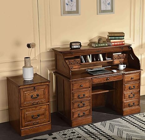 Amazon Com Roll Top Desk 2 Drawer File Cabinet Solid Oak Wood Executive Desk 54 X24 X45 Home Office Secretary Organizer Roll Hutch Crafted Construction Plus 2 Drawer File Cabinet 18 Hw X 22d X
