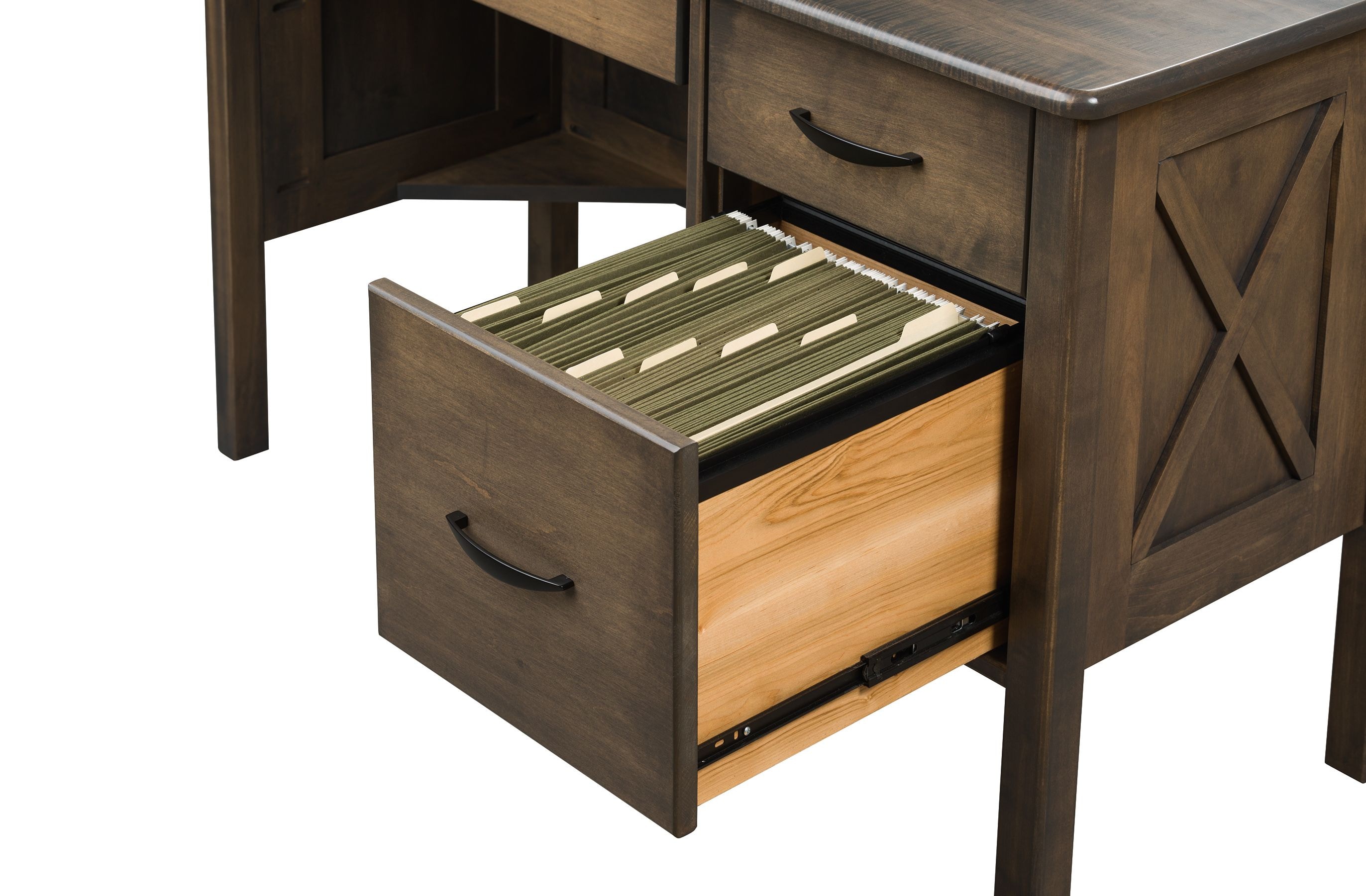 Theres also a small pull out drawer for your computer keyboard. Two-tone Walnut with Grey accents Two storage drawers and one hanging file cabinet plus one hanging file cabinet Moisture-resistant PVC laminate surface 5 Year Limited Warranty Ships in 2 Boxes. RTA-4809DL-WAL Made with engineered wood and a heavy-duty steel frame Desktop storage drawers and file cabinet can be assembled left or right side Finish Color.