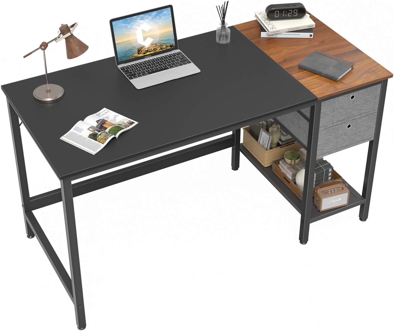 Amazon Com Cubiker Computer Home Office Desk Small Desk With Drawers 47 Inch Study Writing Table Modern Simple Pc Desk Black And Espresso Kitchen Dining