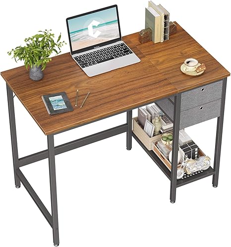 Amazon Com Foxemart Computer Desk 39 Inch Study Writing Desk For Home Office Workstation Modern Simple Style Laptop Table With Storage Bag Drawer Black And Espresso Kitchen Dining