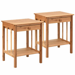 Costway 2 Pc Bamboo Nightstand End Table Drawer Storage Shelf Side Table Bedroom Natural