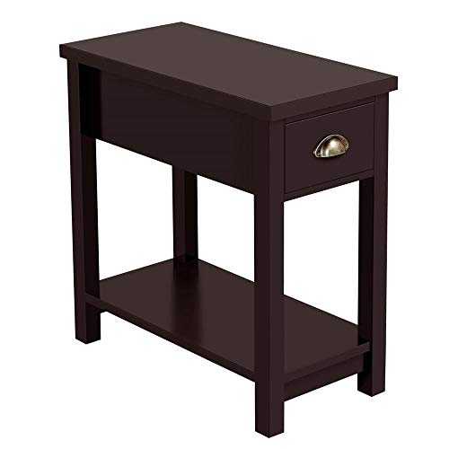 The silver metal pulls are oval for a unique design touch. Winsome Brookfield End Table. Ateboo Sofa Narrow Side Table End Table Night Stand Bedside Table with 1 Drawer and Shelf for Small Spaces Kids Room Bedroom Livingroom Brown.