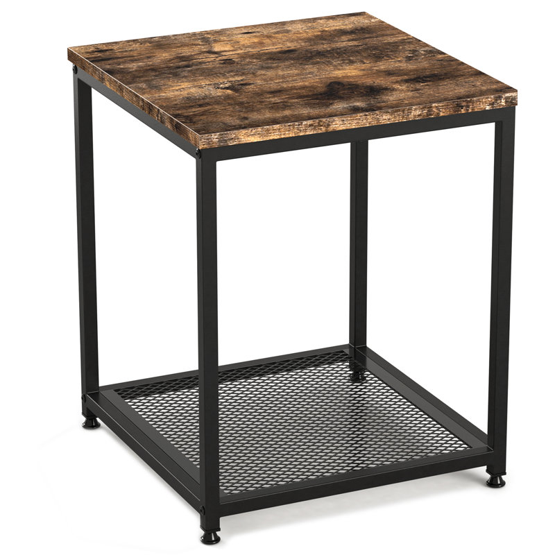 Homemaxs Nightstand Rustic End Table For Living Room Bedroom Side Table With Storage Shelf And Metal Frame Amazon In Home Kitchen