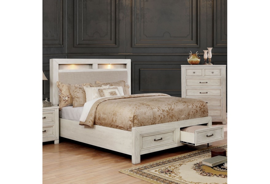 Furniture Of America Tywyn Transitional King 2 Drawer Storage Bed With Upholstered Headboard And Led Touch Lights Dream Home Interiors Panel Beds