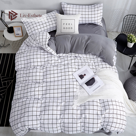Buy Online Liv Esthete Fashion Classic Black Grid Bedding Set Double Queen King Bed Linen Soft Duvet Cover Pillowcase Flat Sheet For Adult Alitools