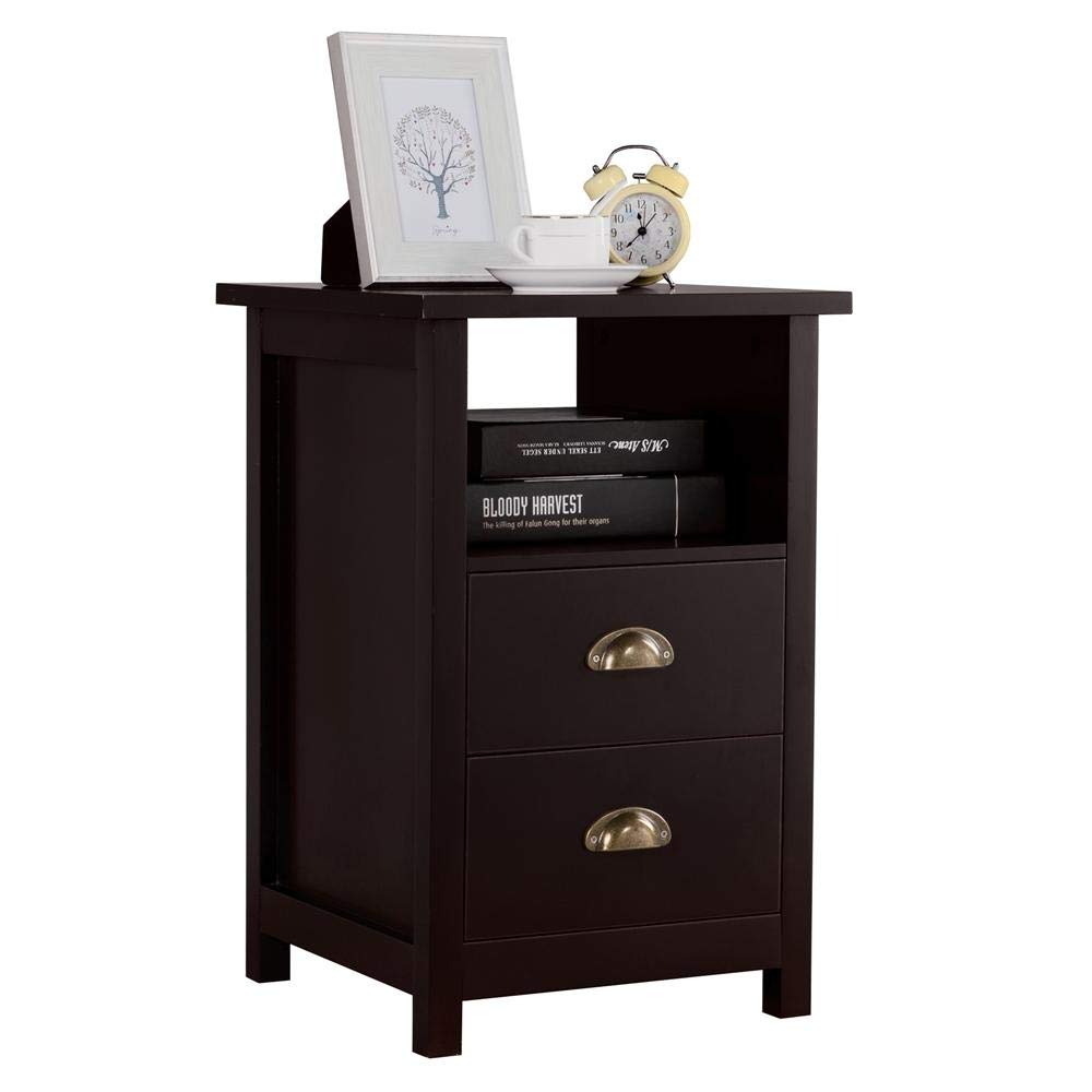 Topeakmart Wood Side End Table Nightstand With 2 Drawer And Open Shelf Storage Cabinet Bedroom Living Room Furniture Espresso Buy Online In India At Desertcart In Productid 179565780